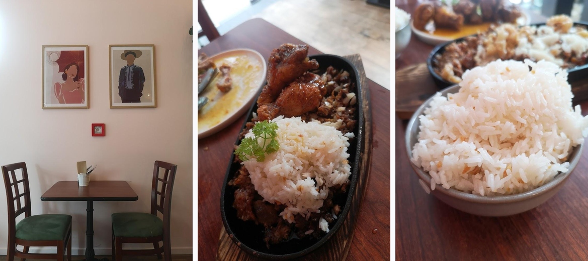 First time coming here for a working afternoon tea and really enjoying the food. We had chicken empanadas, chicken skewers, veggie spring rolls and lots of yummy desserts, like flan. Love the plating and the food is tasty as well. Gotta go back here to try more of its Filipino and fusion menu. The ambience is also enjoyable, with cute pictures of traditional games as well as some slangs and words in Tagalog put on the walls and tables for us to explore. Happy to be back here.